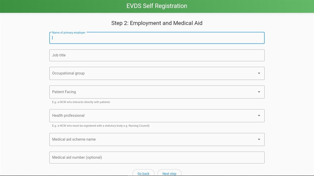 After providing a valid ID number (for South African residents) or passport number, the prospective vaccinee will be directed to the first step of the EVDS form which captures personal information. You must supply the following information: