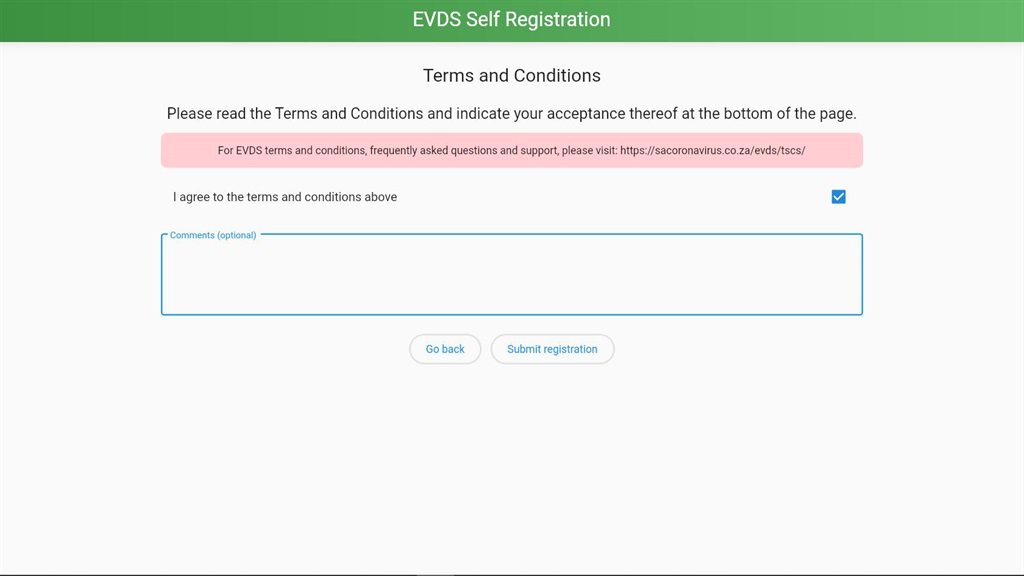 To complete the registration, applicants will need to accept the EVDS’ terms and conditions. Applicants also have the option of leaving a comment in the box provided.